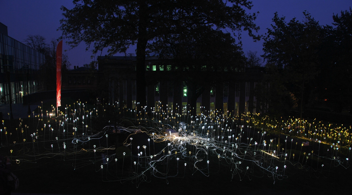 to take a 'Field of Light' fibre optic garden to campuses in the UK, to start conversations with technology students about careers with the firm.